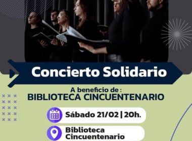 El Coro Municipal invita a toda la comunidad de San Antonio Oeste a ser parte de un hermoso Concierto Solidario que se realizará el sábado 21 de febrero a las 20:00 horas, a total beneficio de la Biblioteca Cincuentenario de San Antonio Oeste.