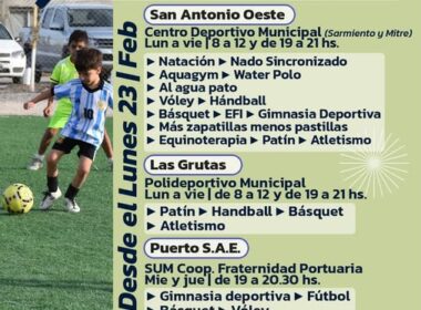 Desde el lunes 23 de febrero el Municipio San Antonio, a través de la Dirección de Deportes, abre las inscripciones para formar parte de las distintas disciplinas deportivas en nuestras tres localidades