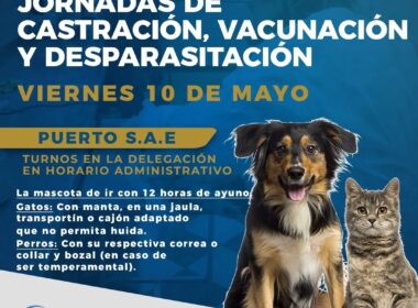 La Jefatura de Zoonosis, informa que el viernes 10 de mayo, en el SUM del Puerto San Antonio Este, ubicado entre las calles Prefectura Naval Argentina y Primeros Pobladores se llevará adelante una jornada de castración, vacunación y desparasitación. Para aquellos vecinos que deseen castrar a su mascota el horario […]