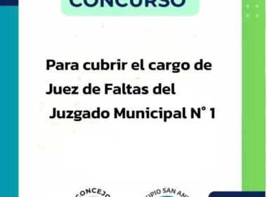 El Municipio de San Antonio y el Concejo Deliberante convocan al concurso público de antecedentes y oposición para cubrir el cargo de Juez de Faltas del Juzgado Municipal de Faltas N°1.