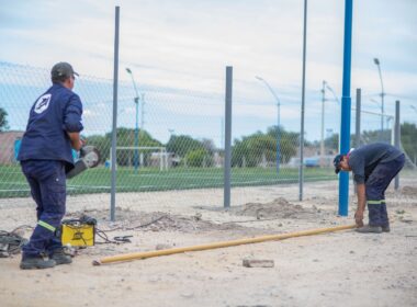 El Municipio de Roca lleva adelante trabajos de mejora y reacondicionamiento en espacios deportivos de la ciudad, como lo son la cancha de Fútbol 11 en el Centro Deportivo Municipal de Zona Norte y la cancha de Básquet del Polideportivo Gimena López.