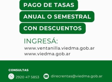 Últimos días para el pago anticipado de tasas municipales Regional Última Noticia 10 marzo, 2026 by redaccion Viedma – Hasta el 13 de marzo inclusive es el plazo para acceder al beneficio por pago anticipado de tasas municipales. Continue Reading →