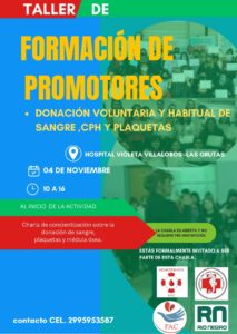 Queremos extender la invitación a toda la comunidad de San Antonio, Las Grutas y Puerto SAE, a la jornada de concientización sobre la Donación de Sangre y Médula. También para aquellos interesados en sumarse a la red de promotores, el día SABADO 4 DE NOVIEMBRE se realizará el segundo Taller de formación de promotores, en el Hospital Violeta Villalobos de Las Grutas, a las 10 hs.