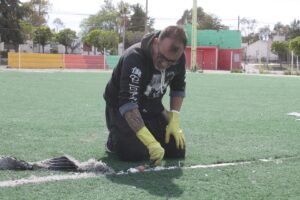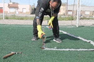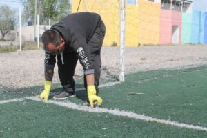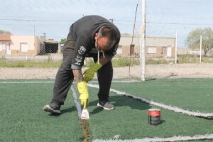 De esta manera, los agentes procedieron al recambio de las líneas que marcan las áreas y medio del campo de juego, entre otros sectores.