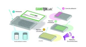 Para visualizar la detección de las toxinas, se utiliza un sustrato que le da a la enzima un color amarillo. Cuando hay presencia de la cianotoxina, la PP1 se inhibe y por lo tanto se ve menos color amarillo en la placa de cultivo. “Con esto desarrollamos el primer kit, CIANOTOX-Lab, pensado para ser usado en laboratorios. Ya está terminado, validado y lo estamos comercializando desde la facultad”, precisa Gasulla.