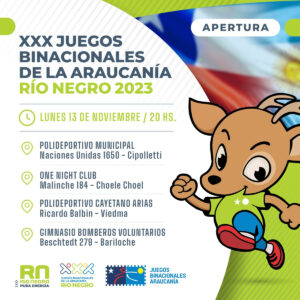 Cabe destacar que las sedes tendrán su momento de apertura el lunes a las 20, de manera simultánea en el gimnasio “Pedro Estremador” de Bomberos Voluntarios en Bariloche; el Polideportivo “Ángel Cayetano Arias” de Viedma; el Polideportivo Municipal de Cipolletti y el establecimiento “One Nigth Club” de Choele Choel, con la participación de las delegaciones, autoridades de ambos países y la provincia anfitriona, municipios y medios de prensa.