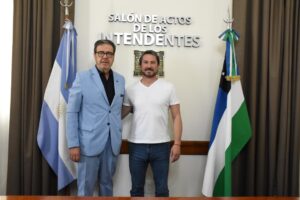 El Intendente Municipal Adrián Casadei, recibió al Intendente Municipal de Trelew, Gerardo Merino, junto con funcionarios de este municipio, con el fin de dialogar acerca de temas claves para el desarrollo de ambas ciudades.
