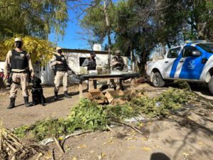 Durante los operativos (que se llevaron a cabo en una estancia de General Conesa y dos viviendas de San Antonio Oeste), el personal desmanteló una carpa invernadero donde se cultivaba la droga en interiores, e incautó nueve armas de fuego, entre las que había dos fusiles, una escopeta, una carabina, tres pistolas, un revolver y un arma larga.También se secuestraron elementos de corte y fraccionamiento, municiones, cartuchos, equipos de telefonía móvil, una balanza de precisión, picadores de sustancias, dinero en efectivo, dispositivos de almacenamiento digital y documentación de interés para la causa.