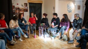 Bariloche – El lunes pasado, en el marco de la 7ma Semana nacional de la economía social y solidaria, se realizó un conversatorio sobre “Economías culturales en Bariloche: redes y autogestión” en el Centro Cultural Casa Macacha.  El encuentro contó con la participación de un público muy variado: estudiantes de la universidad de diferentes carreras, integrantes de organizaciones culturales y referentes de instituciones públicas entre las que participaron: Ecosound, Defensoria del Pueblo, Mueba (Asociación de Músicxs Bariloche), Casa Macacha, Fundación música viva y referentes del arte barilochense.