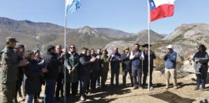 El gobernador Omar Gutiérrez y el su par de la Región de Ñuble (Chile), Óscar Crisóstomo, participaron hoy de un acto en el hito fronterizo que se ubica en cercanías de Las Ovejas, y que une el norte neuquino con aquella región chilena.