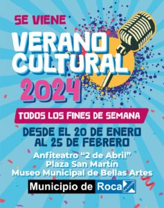 El Municipio de Roca invita a la comunidad a la edición 2024 del Verano Cultural. Espectáculos musicales y artísticos que se podrán disfrutar todos los fines de semana, desde el 20 de enero al 25 de febrero.