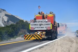 Además, complementario a la demarcación del eje amarillo, se trabajó en la señalización de los bordes y flechas sobre la calzada – por extrusión – que indican la proximidad de curvas. Estas acciones forman parte del plan integral de mantenimiento implementado por la División Conservación del Distrito, con el fin de mejorar la transitabilidad y la seguridad en las rutas nacionales.