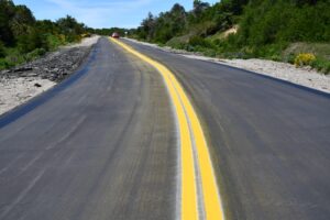 La demarcación horizontal se llevó adelante en los tramos recientemente reparados y se utilizó pintura termoplástica reflectante que permite una mejor visión nocturna de la calzada y aumenta la durabilidad de la señalización.