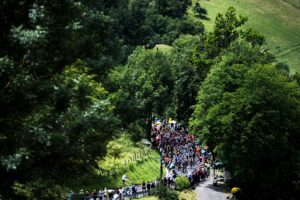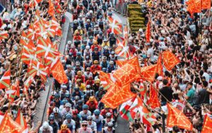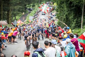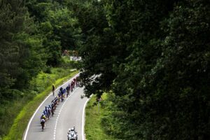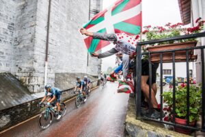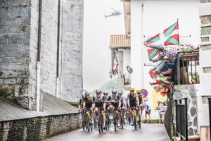 La aproximación a la Côte de Gurutze (4ª, km 174,2) se vio perturbada por una caída sin consecuencias que implicó entre otros a Ben O’Connor (Ag2r-Citröen) y por un pinchazo de Jonas Vingegaard (Jumbo-Visma); ambos volvieron al pelotón de inmediato. En las primeras rampas de la ascensión se descolgó Boasson Hagen, quedando Powless sin oposición para puntuar y con 1’55” de ventaja sobre un grupo principal que seguía encabezando UAE. El paisaje cambiaría posteriormente, con Jumbo-Visma asumiendo el timón en busca de una buena posición para la subida decisiva.