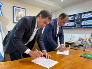 El intendente Marcos Castro junto al ministro de Seguridad y Justicia de la provincia, Daniel Jara, firmaron un convenio de cooperación institucional para la realización de diversas actividades inclusivas.