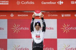 El Ferial Larra Belagua – Demostrando por qué fue el mejor escalador de la pasada edición, Jay Vine (UAE Team Emirates-XRG) ha firmado hoy una nueva exhibición en la 10ª etapa de La Vuelta 25 para sumar su segunda victoria en una llegada en alto en esta edición El Ferial Larra-Belagua, después de 175,3 kilómetros de etapa de verdadera locura en la lucha por la fuga. El australiano, vestido con su maillot de lunares, ha dejado atrás a dos corredores de Movistar Team (Pablo Castrillo y Javier Romo) que le acompañaban en la avanzadilla para sumar el cuarto triunfo parcial de su trayectoria en la Gran Vuelta española, cruzando la meta con 1’05” de ventaja sobre un grupo de favoritos en el que no ha podido aguantar el líder Torstein Traeen (Bahrain Victorious). Con las diferencias conseguidas, Jonas Vingegaard (Visma-Lease a Bike) vuelve a situarse al frente de la clasificación de la carrera con 26 segundos sobre el noruego y 38 sobre Joao Almeida (UAE Team Emirates-XRG), que ha demostrado hoy ser el más ambicioso entre los aspirantes a la victoria final.