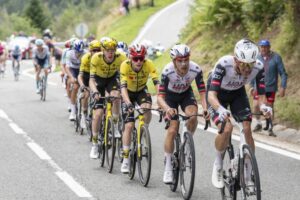 Aprovechando la superidad numérica de su equipo, Javier Romo (Movistar Team) se lanzaba al ataque en la mitad del ascenso al Alto de las Coronas (3ª categoría), que se coronaba a 47,6 kilómetros de la línea de meta. El toledano ha coronado el puerto en solitario, seguido de cerca por Jay Vine (UAE Team Emirates-XRG) y su maillot de lunares, y tras el descenso han conseguido consolidar un grupo de ocho corredores en el que también se han sumado Pablo Castrillo (Movistar Team), Abel Balderstone (Caja Rural-Seguros RGA), Xabier Mikel Azparren (Q36.5), Archie Ryan (EF Education-EasyPost), Julien Bernard (Lidl-Trek) y Nicola Conci (XDS Astana Team). Alec Segaert (Lotto) y Kevin Vermaeke (Picnic-PostNL) también han logrado entrar en la ‘fuga de la fuga’ antes del sprint intermedio de Isaba (km 153), por lo que han sido diez los corredores que han empezado en cabeza de carrera la aproximación a la subida final a la estación de Larra-Belagua (1ª categoría) con sus 9,4 kilómetros al 6,3% de desnivel medio.