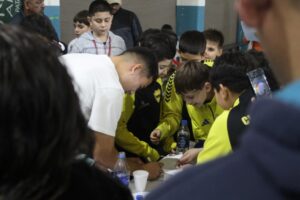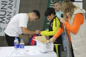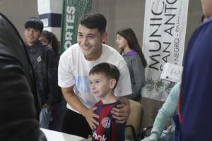 Este viernes Tomas Porra, oriundo de Las Grutas y jugador de primera división del futbol nacional visito San Antonio y desde la Dirección de Deportes del Municipio San Antonio se generó un espacio para que los niños y niñas pertenecientes a los clubes del ejido, que se acercaron al gimnasio municipal pudieran dialogar con él y hacerles preguntas de su carrera, firmar camisetas y sacarse fotos.