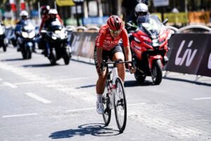 Verhulst está 30” por delante de sus rivales cuando entra en la última vuelta. Finalmente es atrapada a 2,3 km de distancia de la línea. Ellen van Dijk (Trek-Segafredo) se pone al frente, pero el Team DSM y el Jumbo-Visma pasan por delante de ella para establecer un magnífico sprint entre el icono Vos y la estrella en ascenso Wiebes, que por poco se lleva el primer Maillot Jaune.