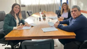 Firmaron, en Viedma, la secretaria de Trabajo, María Martha Avilez y el secretario general de la UOCRA zona atlántica, Damián Miler y, en Buenos Aires, el director ejecutivo de la Fundación, Gustavo Gándara.